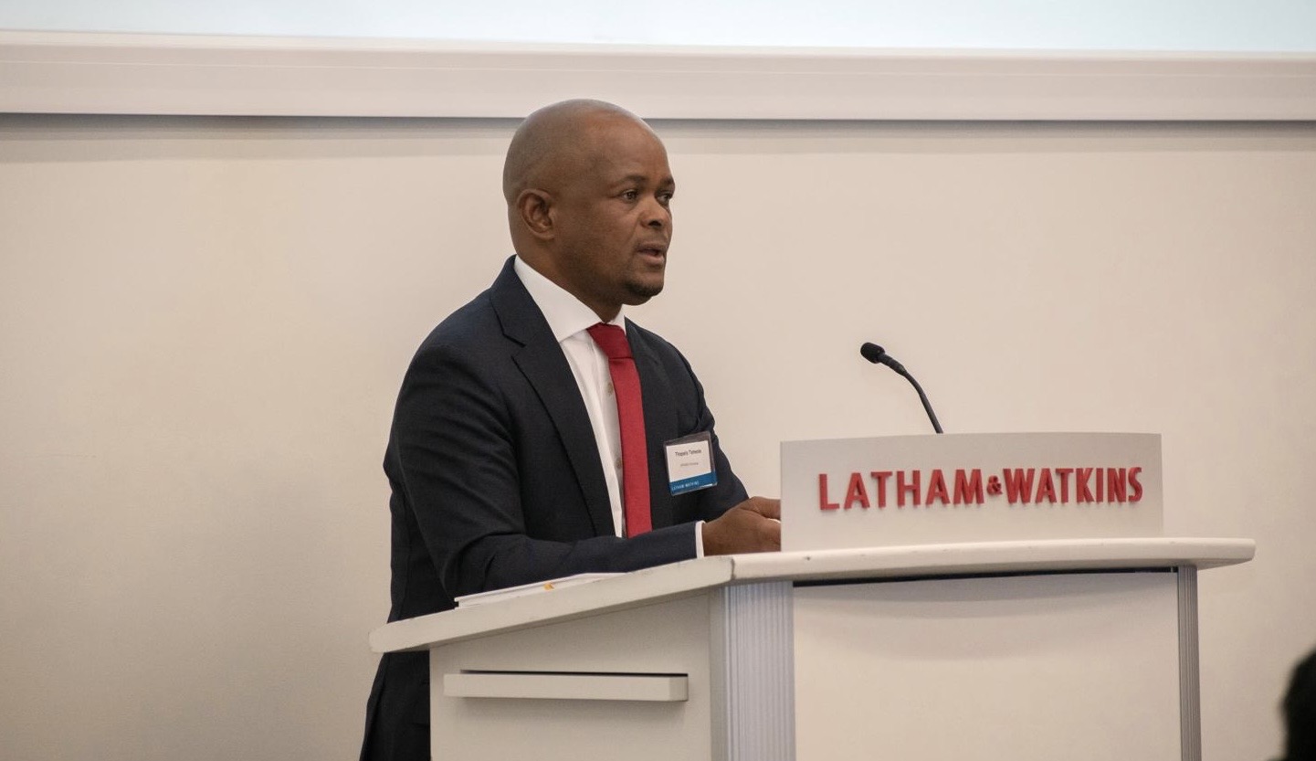 Thapelo Tsheole, Chief Executive Officer of AFRINEX, addresses delegates at the African Capital Markets Investment Conference in London, outlining the exchange’s role in connecting African issuers with global capital.