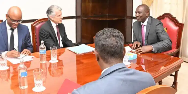 President William Ruto (R) meets J.P Morgan Public Sector Group’s vice-chairman and global head, Daniel Zelikow, (second-left) at State House, Nairobi on February 21, 2022. | PHOTO:PCS